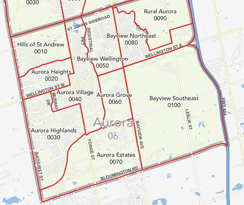 最近几年,整个多伦多地区房价不断上涨,增长势头迅猛。由于多伦多拥挤的人口,供不应求的住房,以及居高不下的楼价等诸多因素,已有很多买家把目标瞄准到Aurora. 随着买家的增多和市场房源的减少, Aurora的物业价格也在持续的上涨。多伦多地产局把Aurora小镇分成了10个社区,现在就以每个社区不同的特点进行逐一介绍与分析。