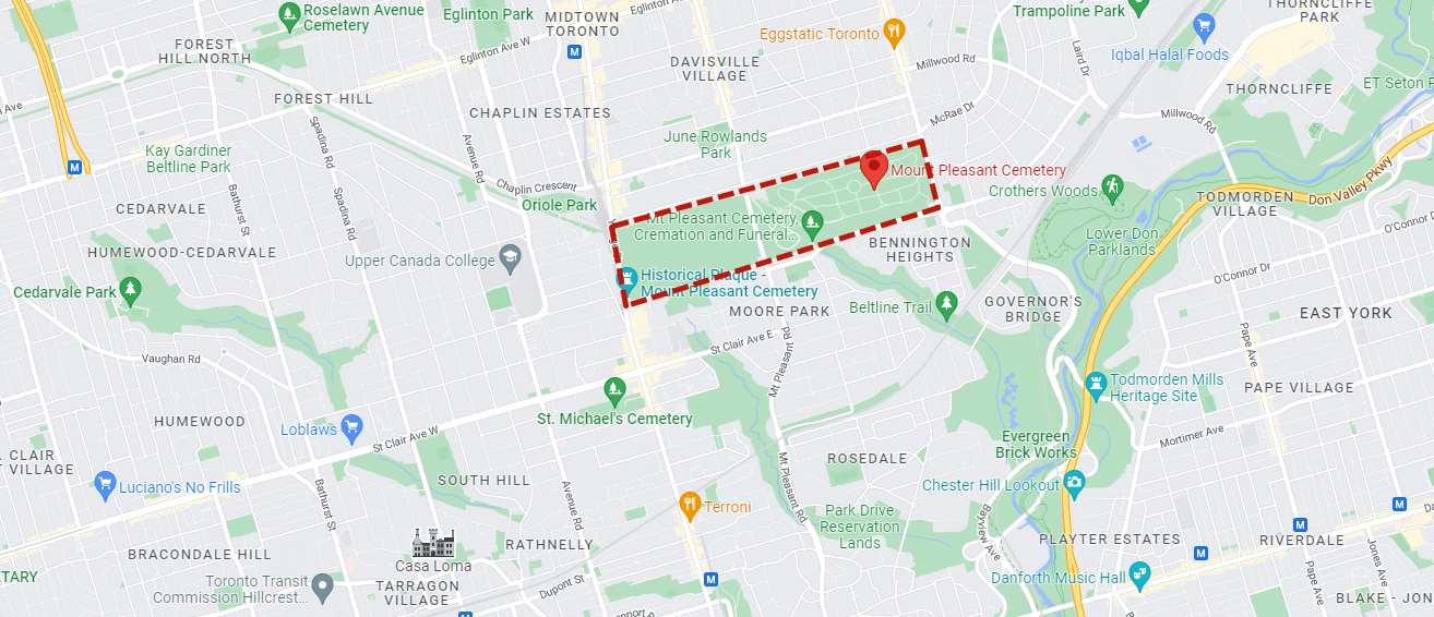 Mt Pleasant 分为东西East和West,整体位于Yonge街东面,社区名字源于区内的 Mt Pleasant Cemetery,这也是中城区最大的一片绿地,林木茂密,环境幽静。