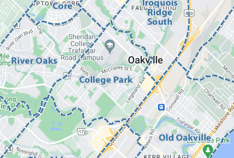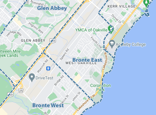位于Oakville东南部,东至密市边界,南到安大略湖,西到Morrison Creek,北边到Cornwall Road。