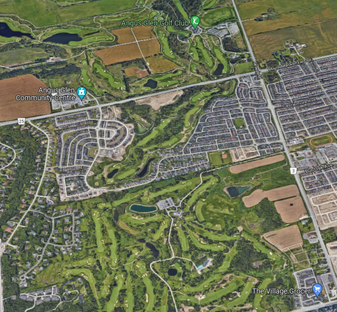 自然环境:Angus Glen社区地理条件优越,社区周围被Angus Glen Golf Club和York Downs Golf & Country Club两大高尔夫俱乐部环绕。