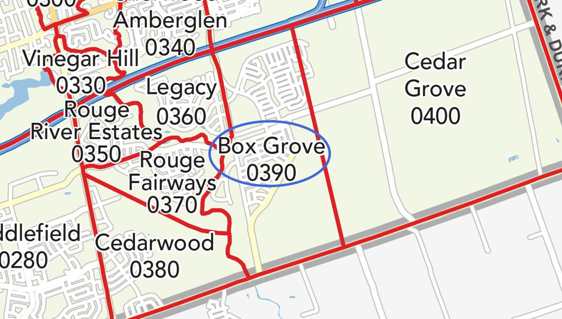 地理位置:地处万锦的东南角,这个社区的地理位置大致南起Steeles, 北到Hwy 407,西边以Rouge River/Ninth Line为界,东至Reesor Rd.