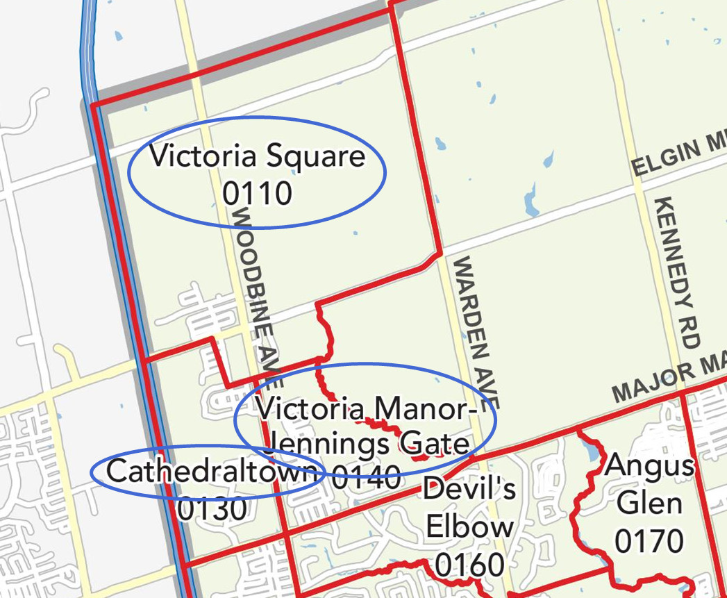 Victoria Manor-Jennings Gate/Cathedral town/Victoria Square 是万锦西北部的三个紧密相连的社区,这三个区实在非常相似,生活半径,配套设施基本相同。