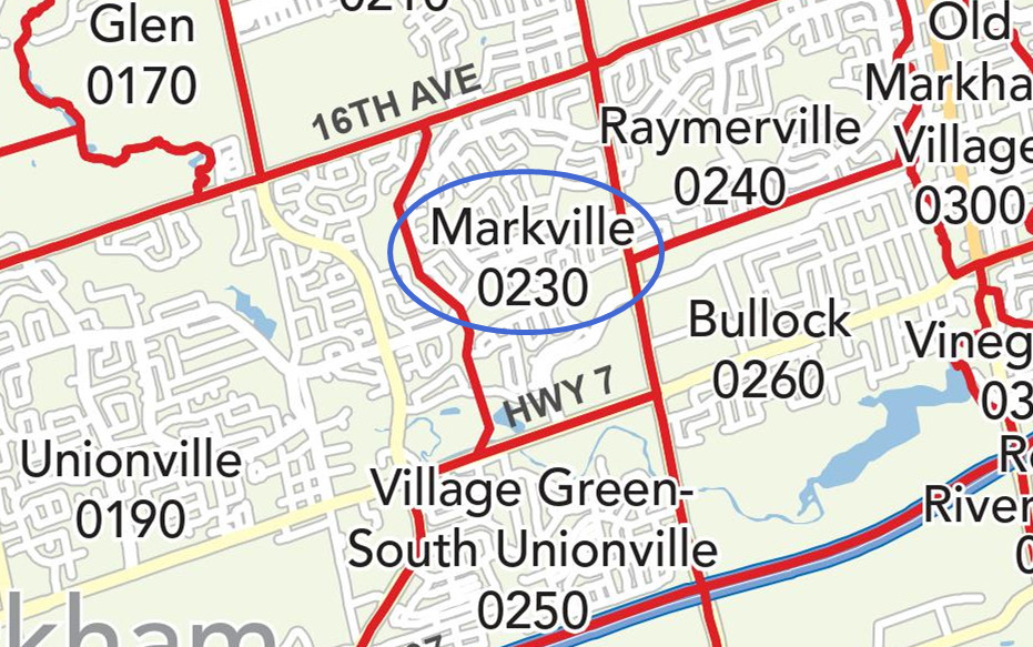 地理位置:社区南起 Hwy 7 ,东至 McCowen Road, 北接 16街, 西面与渔人村社区接壤。区内就有Centennial GO Train火车站直达市中心,Hwy 7沿线的YRT也方便了人们的日常出行。
