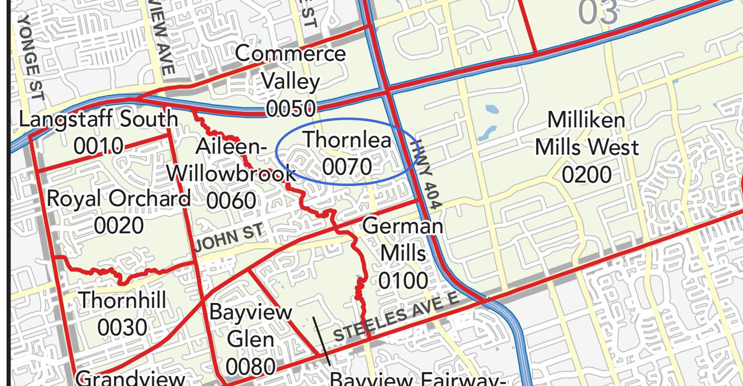 Thornlea是万锦西面的一个成熟社区,社区开发于80-90年代,物业多为独立屋且占地都比较大。