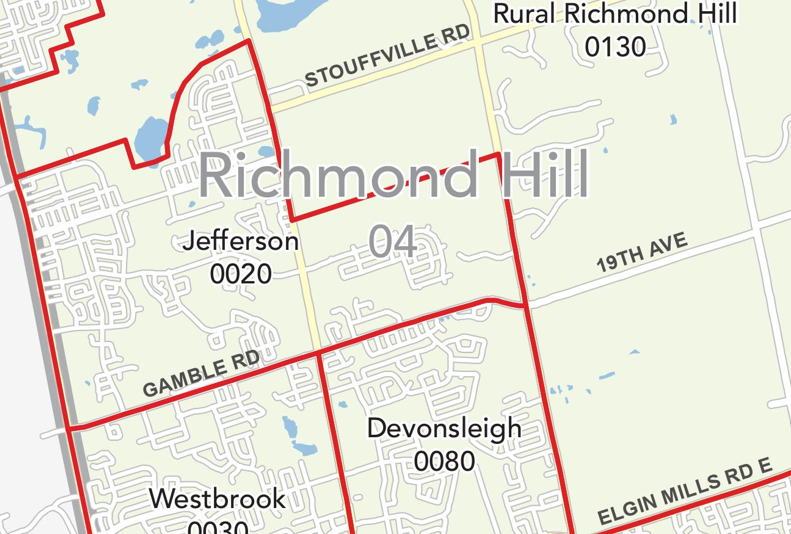 地理位置: Jefferson 社区位于列治文山的北面,属于开发中的新兴社区,东边以Bayview Ave为界,南起Gamble Rd/19th Ave,西面到 Bathurst St ,北边以 Jefferson Side Road 与Yonge St交界处西北角住宅区为界。