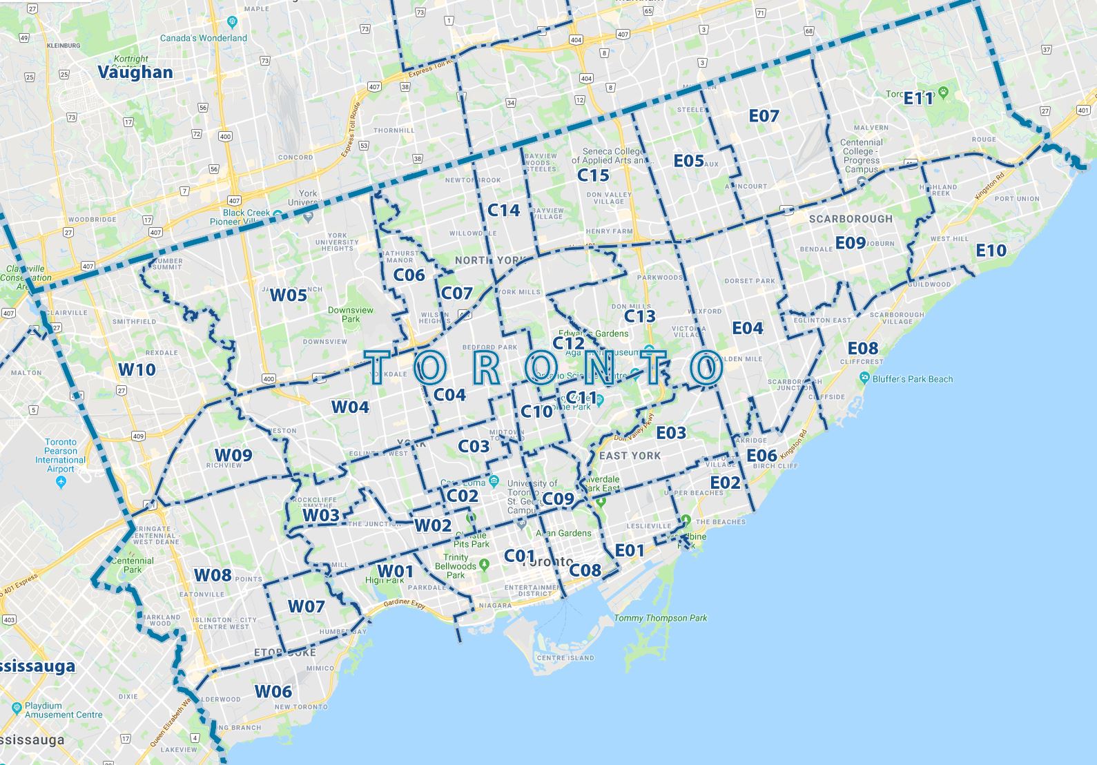 而多伦多地产局则将多伦多市划分为三大块,分别是东部,中部,和西部。东部主要为世嘉堡和东约克,代码从E01-E11; 中部主要为多伦多市中心,中城区,和北约克一部分,代码从C01-C15; 西部主要为Etobicoke和北约克一部分,代码为W01-W10. 为了让大家更好的、更细致的了解多伦多,我会逐步的整理出各个地区,各个细分社区的物业特点来供大家参考,给大家一个更好的选择。